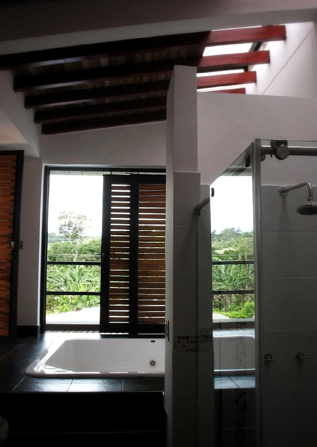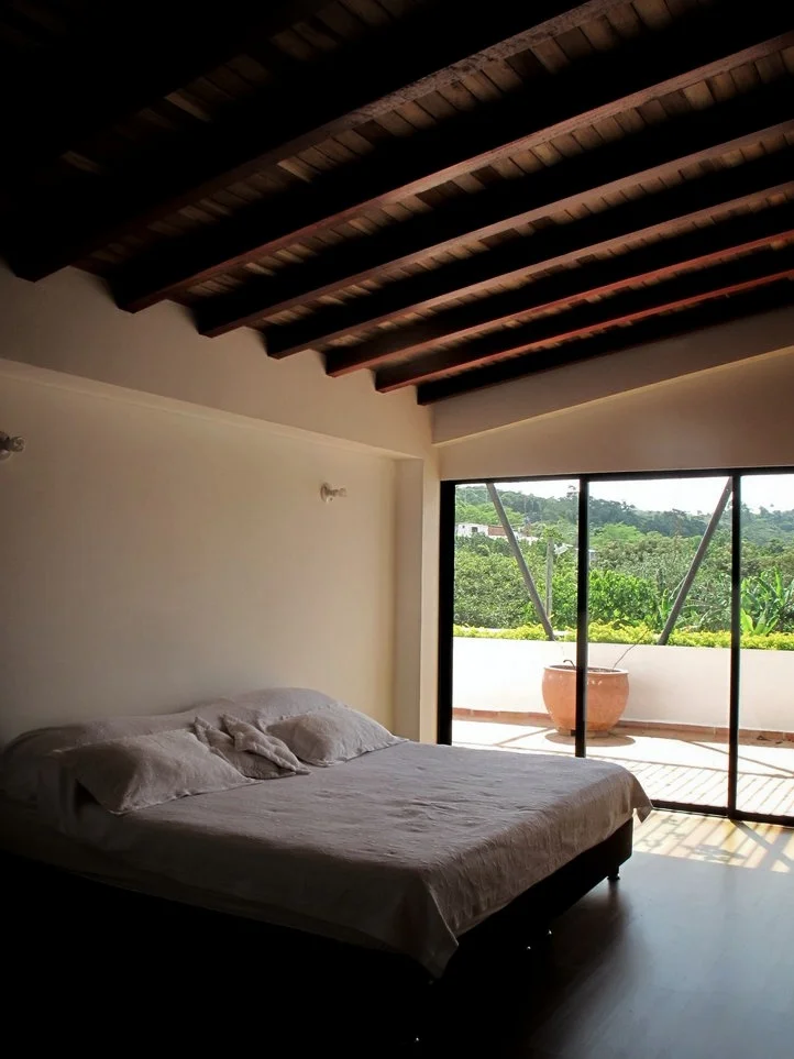 El programa espacial desarrollado se formuló en torno a las acciones que se llevarían a cabo; sintetizando y potenciando los deseos de los clientes: (dormir en pareja, compartir, contemplar el paisaje, tomar el sol cómodamente, tomar un baño, tener la posibilidad de trabajar y estudiar en casa, descansar al aire libre). Partiendo de estas acciones o verbos se estructuró la propuesta, añadiéndole en el proceso atributos que aumentaran el sentido de protección y de habitar un hogar (uso de materiales cálidos, cubiertas que potenciaran los espacios y dieran un sentido de cobijo al interior del dominio de la pareja, ventanas orientadas en búsqueda consciente del paisaje, jardineras usadas también como antepechos, pérgolas para tamizar el sol en la terraza y diversidad de niveles internos).