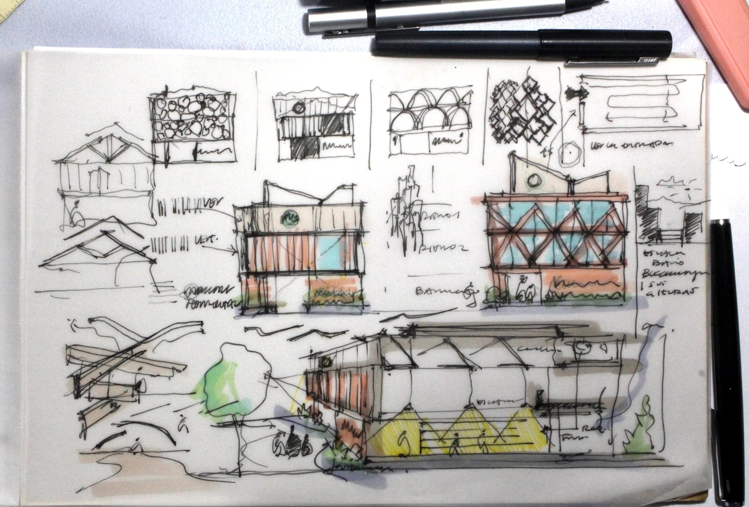 El diseño arquitectónico se basó en cuatro principios que obedecen a la naturaleza del encargo: 1) El principio de economía, buscando generar respuestas espaciales simples a las necesidades expresadas en el programa de áreas; 2) La aplicación de estrategias bioclimáticas que produjeran ahorros energéticos y económicos para el promotor del proyecto; 3) Un edificio diseñado a escala humana, acorde al pasado y memoria de la condición residencial y de alturas bajas del barrio y, 4) Un lenguaje material que fuera acorde a los encargos precedentes para la cadena Mercasur, generando variaciones sin perder el sentido de unidad.
